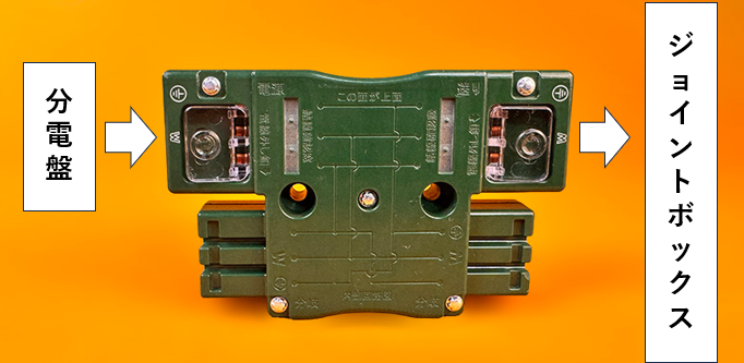 ・ ジョイントボックスを連結させる場合は、ケーブル端子の片側を分電盤へ、逆側はジョイントボックスへつなげます(つなぎ方①)
